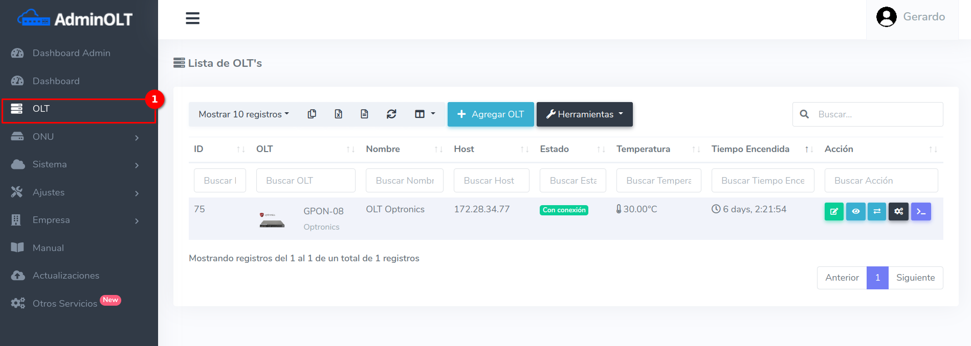 1 Ir a Lista de OLT