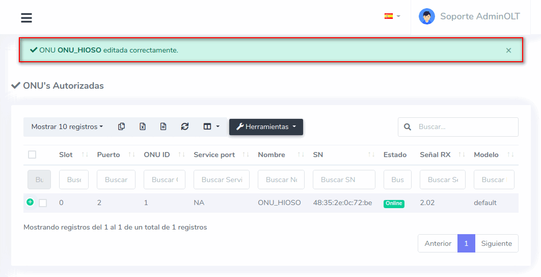 Tome en cuenta que el puerto PON de la OLT debe tener deshabilitados el modo NonAuth. Si tiene dudas sobre este tema puede consultar el siguiente manual; Configurar Puerto PON
