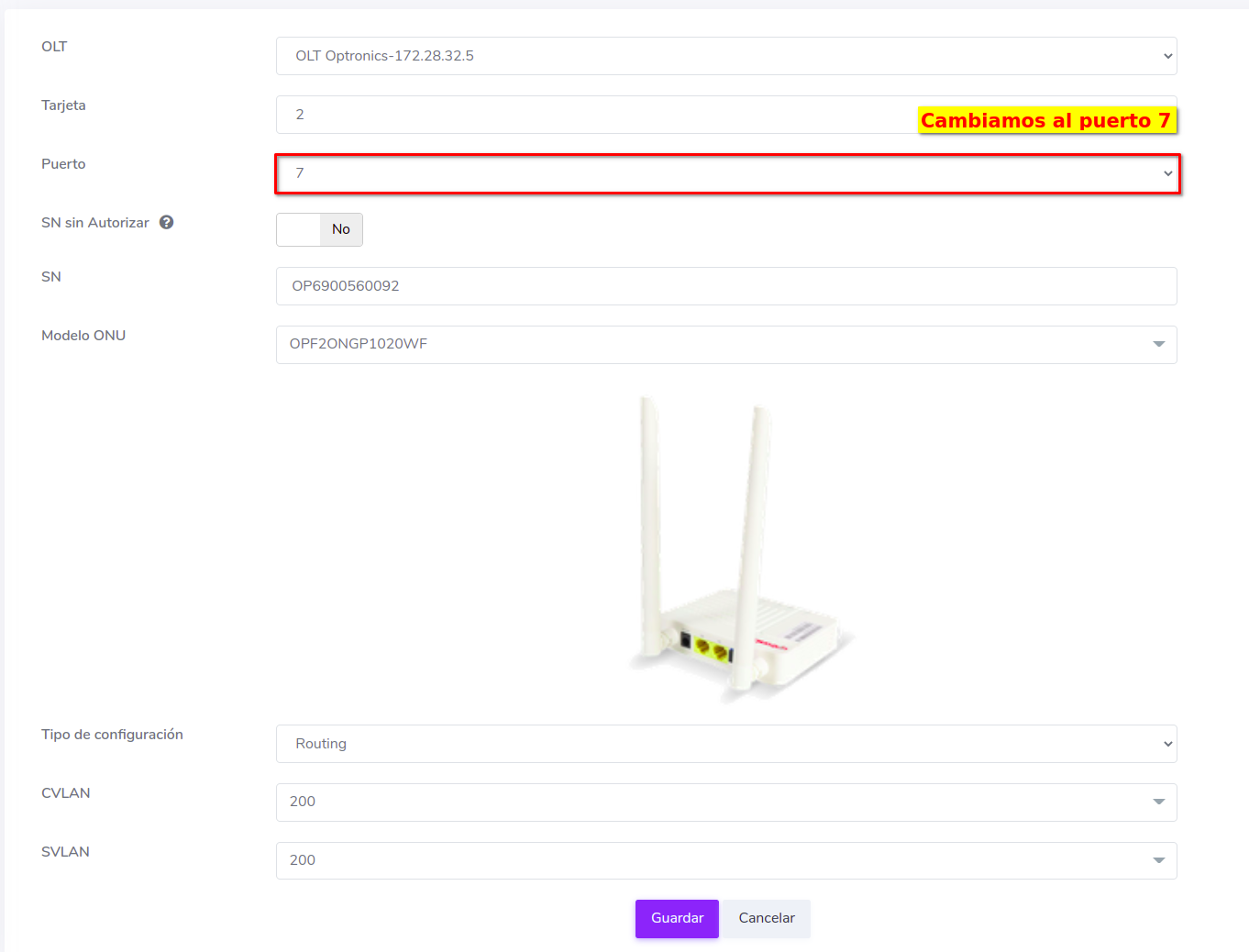 Cambiar ONU Optronics de Puerto