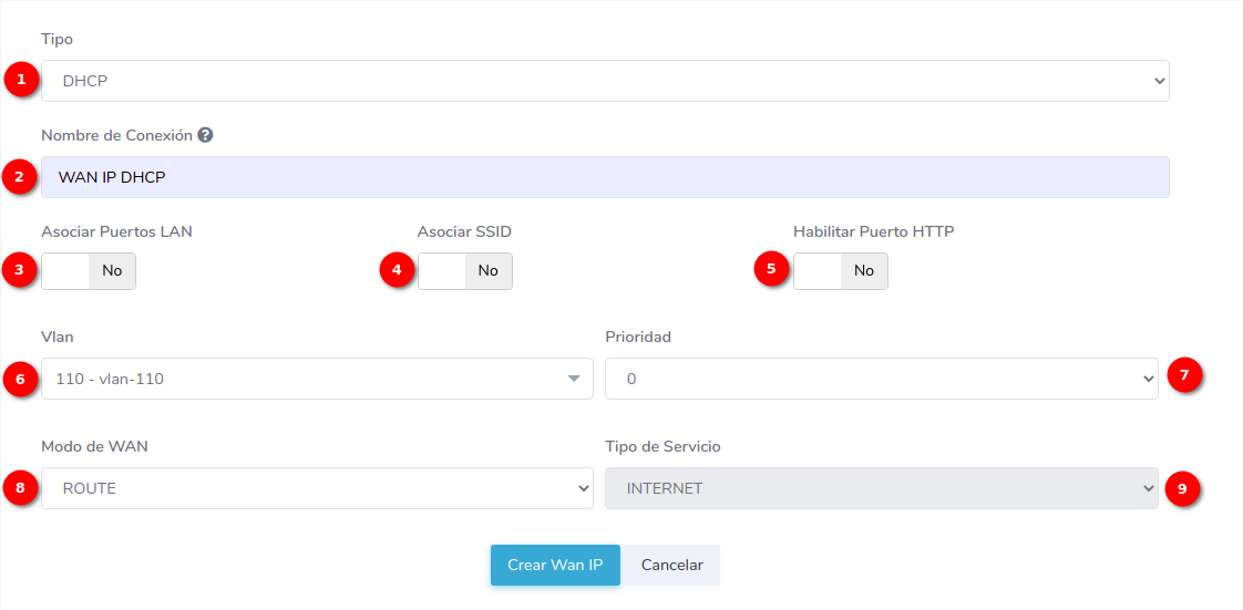 - ¿Como crear una configuración WAN IP de tipo DHCP?