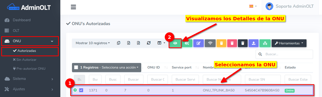 Al hacer esto, la configuración se borrará de la ONU y del sistema AdminOLT.