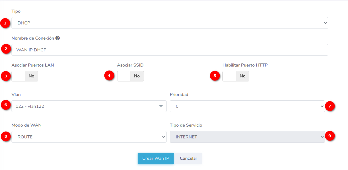 - ¿Cómo crear una configuración WAN IP de tipo DHCP?