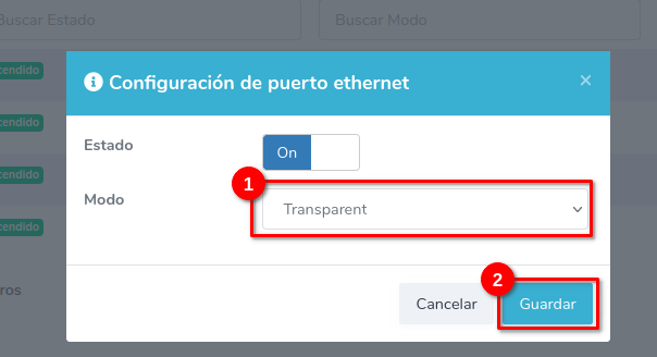 1 En Configuracion de puertos ETH dirijase al boton de configuración del puerto ETH que desee configurar