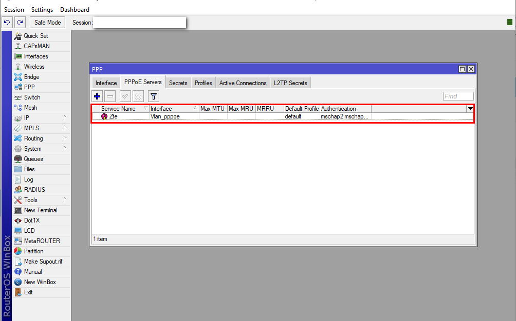 De igual forma se necesita ya tener el servidor PPP junto con su usuario. En este ejemplo usaremos un servidor en un dispositivo MikroTik.