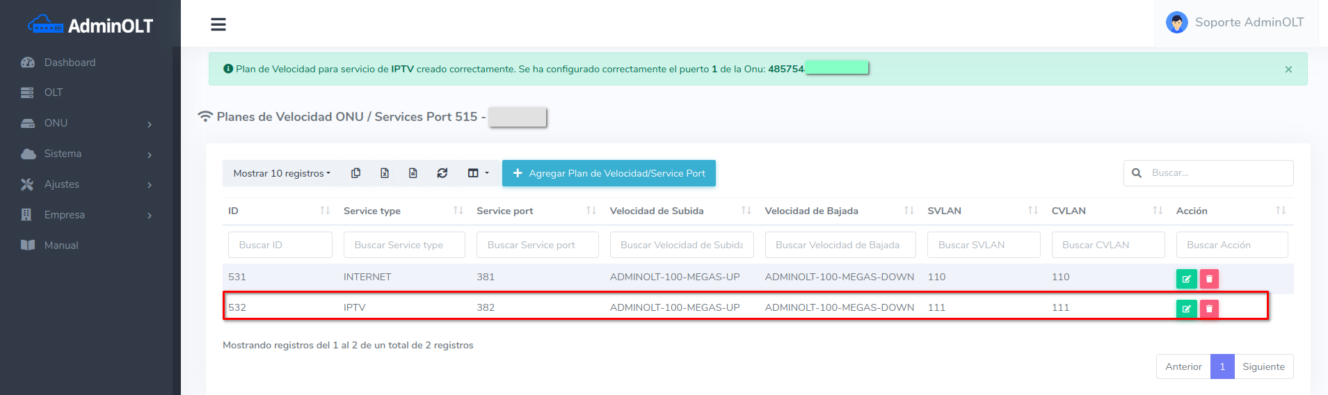 - ¿Puedo crear un plan de velocidad teniendo una onu autorizada?