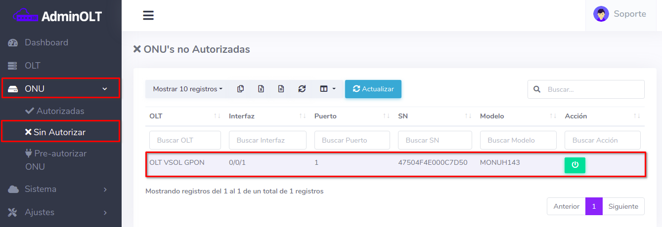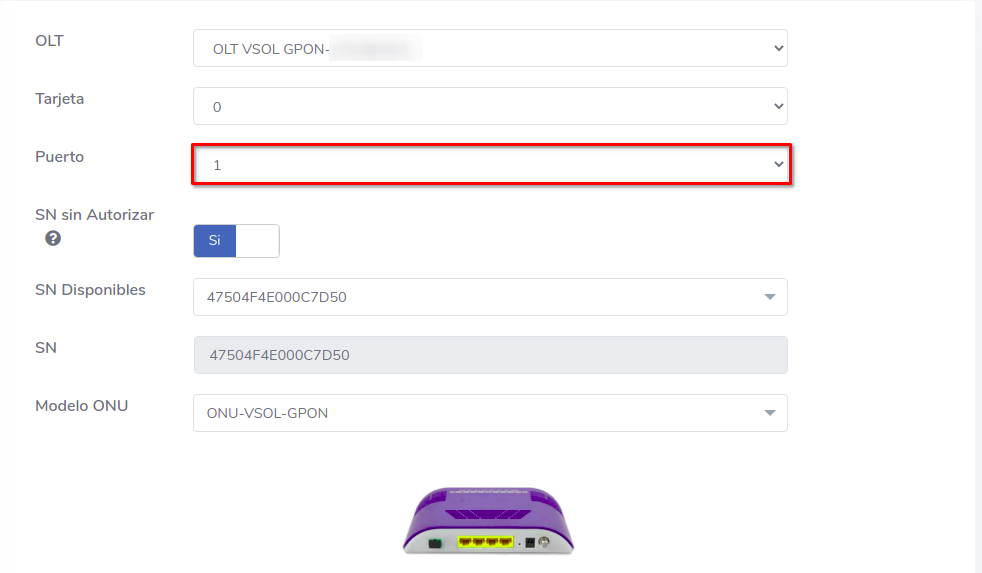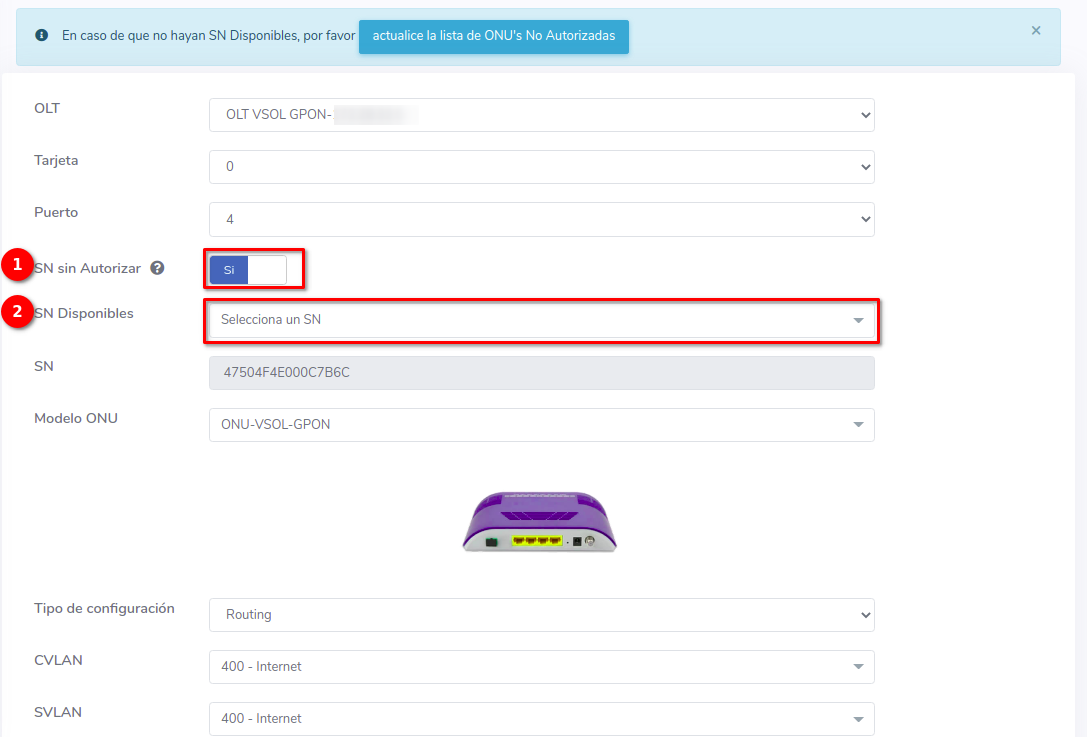 Editar ONU Vsol por Numero de Serie (SN)