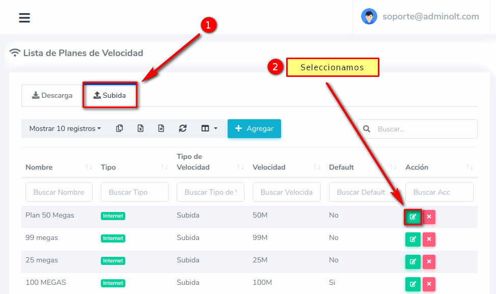 Al modificar un Plan de Velocidad, por ejemplo, de 50 megas a 51 Megas los clientes actuales relacionados al plan se verán afectadas, por lo tanto su nueva velocidad seria de 51 megas.