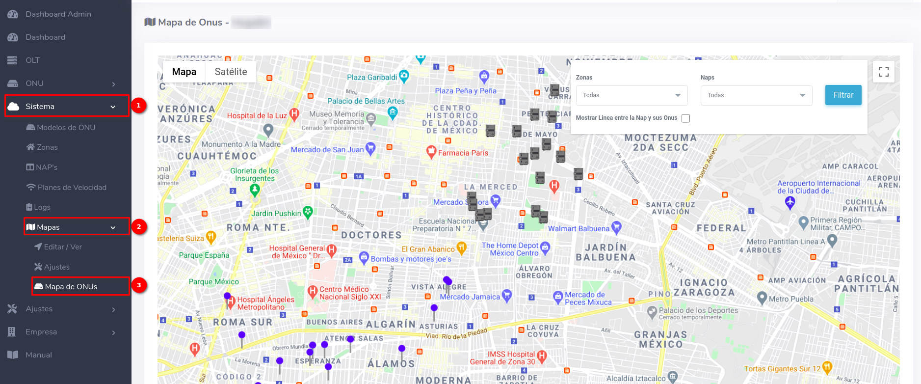 1 Ir a la sección Sistema > Mapas > Mapa de Onus.