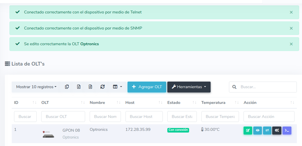 1 Para poder establecer la conexión de manera exitosa es necesario que generemos un script, para poder generarlo, nos dirigimos a nuestra OLT y seleccionamos la opción de editar.