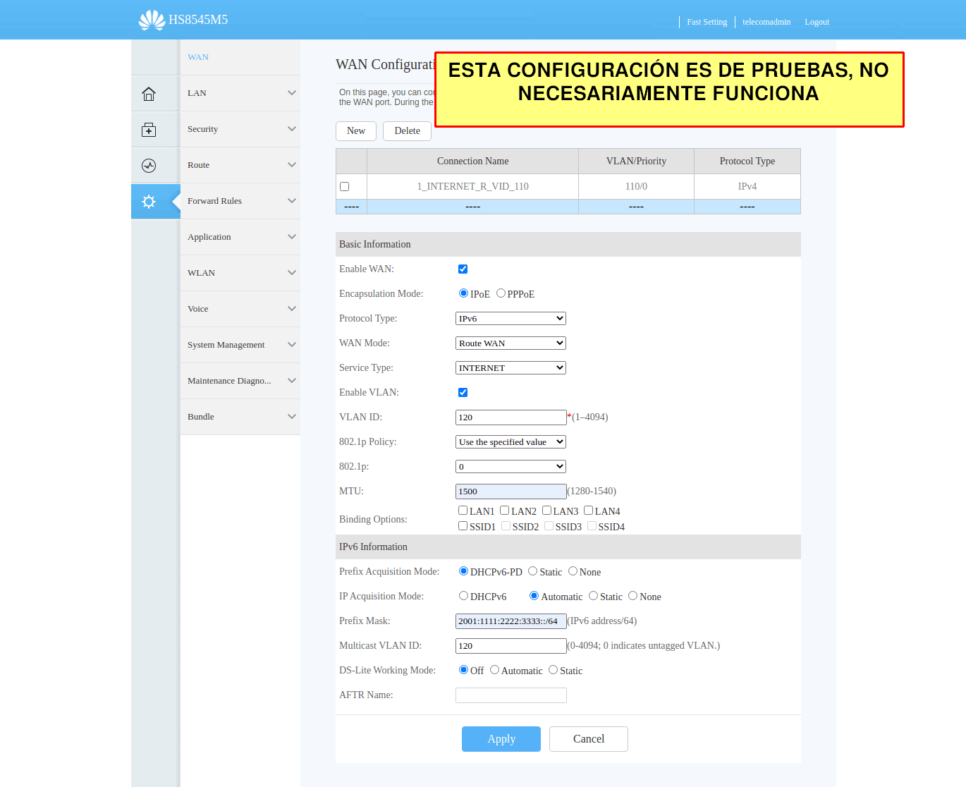 Se perderán las configuración, en caso de hacerlo volver hacer los pasos Pasos para crear WAN IPV6 con AdminOLT